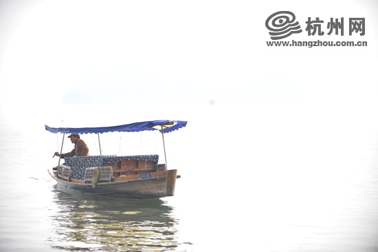 雾中西湖的船,有画的意境(王宁 摄)