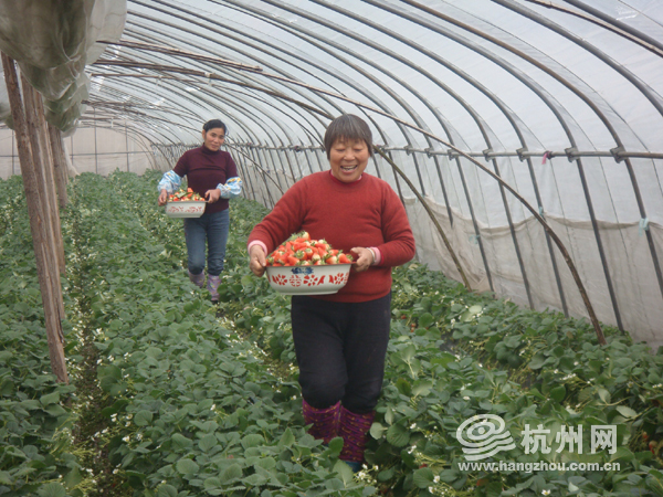 正在草莓棚里采摘的骆大妈告诉杭州网记者,仅仅是种草莓的一项收入,她家一年就有20多万元。