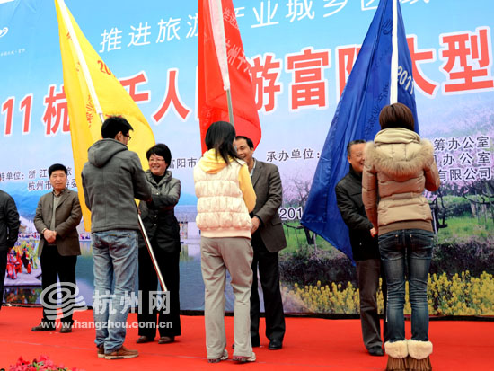 富阳市政府副市长方仁臻为三支队伍授旗