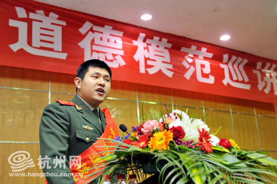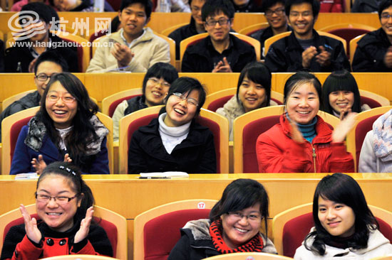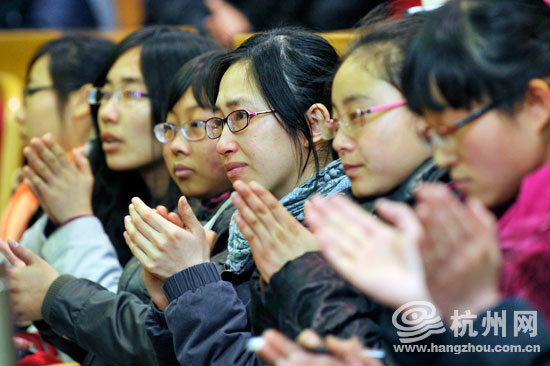 五位代表来自不同年代、从事不同的行业,有的还是刚毕业的大学生,但他们却有着同样一颗珍贵的奉献之心。诚信立业的企业家、全国劳模陶晓莺,平民英雄、用法的力量助人的公益律师章碧珍,在化学品泄漏危机中临危不惧、勇救被困群众的英雄团队、第六届“杭州十大平民英雄”特别奖获得者杭州市公安消防局祥符中队,也依次上台,或激情或质朴、或催人泪下或谈笑风生,把那些在他们看来平凡地再不能平凡的故事讲述给大家,然而同学们却听得出:这些故事里包含着平凡中的伟大,他们身上蕴含着一种榜样的力量,他们对生活的积极态度、对工作的热情折射出人性的光芒。