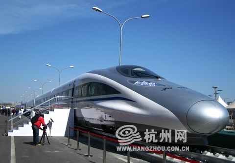 广场上展出的“和谐号”动车组
