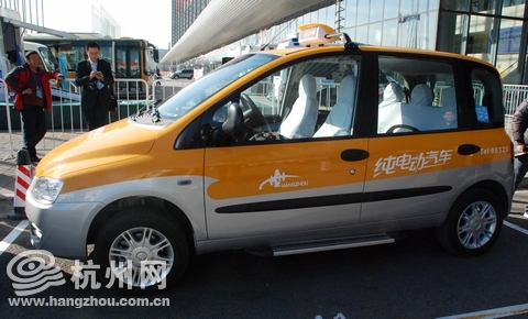 当杭州网记者从中发现浙江的“身影”时,倍感亲切与激动;那辆簇新光亮的黄色汽车,不正是在杭州大马路上奔跑的电动出租车嘛!
