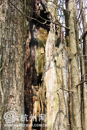 史上,该树曾历经磨难,多次遭到雷击和火烧,部分树干被严重烧毁,至今,焚烧痕迹犹存。
