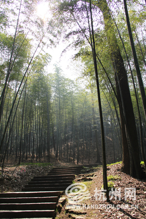 沿着云溪竹径,循着林涛竹海脚步拾级而上,不多时便是五云山,老银杏就在这五云山顶。