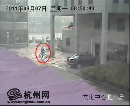 嫌疑人骑着自行车出现