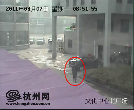 在停自行车和电动车的区域转悠了一会儿后,8点55分,男子推出了一辆电动车,走开了。