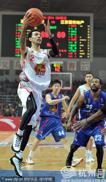 3月23日晚上,稠州银行队在主场迎来了江苏队的挑战,这是两队之间进行的季后赛首轮系列赛中的第一场。本场比赛之前,除了胜负之外,还有一个很大的悬念,就是稠州银行队的马库斯能否连续第五场取下三双,如果可以的话,他就将打破自己和姚明共同保持的连续四场三双的CBA纪录。最终,马库斯未能完成这一壮举,33分6篮板5助攻4抢断的数据足够耀眼,但却不足以让他打破纪录,也不足以让球队赢球。经过加时赛苦战,稠州银行队主场95比100负于江苏队,爆了一个不大不小的冷门。