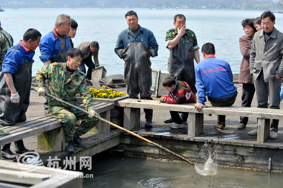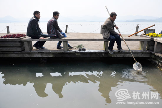 杭州网讯 中午的西湖边暖洋洋的,音乐喷泉附近围了一圈人,中间有位师傅拿着根竹杆在湖里搅来搅去,一打听,原来是在捞手机。
