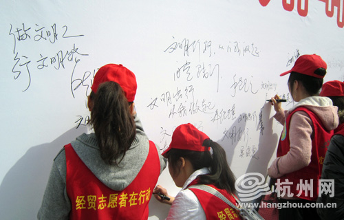 仪式结束后,领导、志愿者及各方阵代表来到寄语墙前写下自己对文明出行的寄语。200余名志愿者赴各交通路口开展“大拇指接力棒”、交通文明劝导、秩序维护、交通文明宣传等志愿服务活动。 |