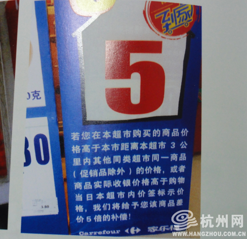欧尚大关店、家乐福涌金店:经核实后,如情况属实,同意退还差价。家乐福还对消费者承诺退赔消费者五倍差价。