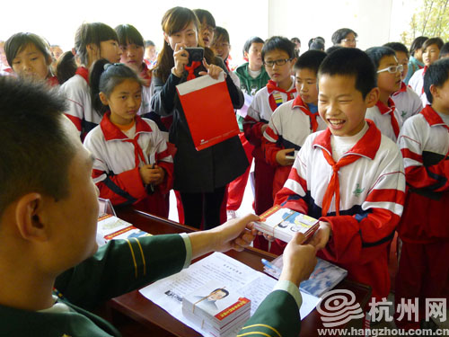 当然,同学们的努力并不会白费,依据答对数量,馆里还会奖励他们五本一套的连环画《杭州市革命烈士画传》(每答对4道题目可获得一本)。这套连环画是纪念馆为庆祝建党90周年特别设计制作的。