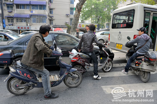 杭州网讯 中山北路胭脂巷路口有一条斑马线,早高峰的时候会有很多行人和非机动车穿行。