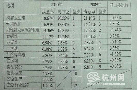 在会上《2010年度杭州市市直单位综合考评社会评价意见报告》(以下称<报告>)发布,据介绍,2010年度市直单位社会评价办法在原有基础上,作了新的改进。在市民代表层面1万个样本总数中,首次抽出1000个名额用于农村居民代表。同时,采用随机入户调查、扩大评价样本社区覆盖面等方式,对社会评价样本库作了更新调整。