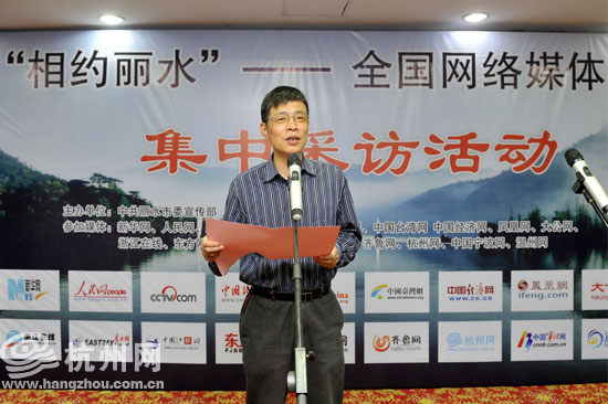 丽水市委外宣办主任胡伟华主持网络媒体记者见面会。