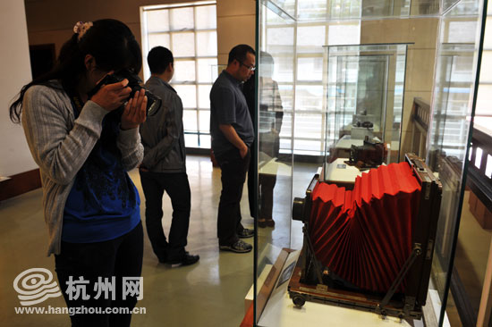 摄影博物馆内收藏的古董相机。