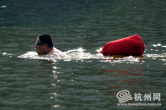 自幼在钱塘江长大的金先生却毫不在乎地入了水,还展示了一下蝶泳。