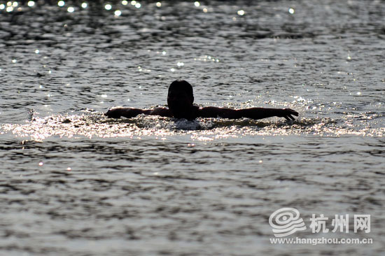 杭州网讯 4月23日下午四点,阳光正暖,贴沙河里几名游泳爱好者游得正欢。