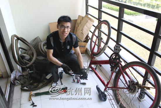 温永清从小就是修理高手,洗衣机、三轮车、摩托车都有修理过,自行车更是不在话下,于是他就自己在宿舍里开始替周围认识的朋友修自行车,为了让同学们知道这个事,他还在宿舍的电梯里贴了个告示。