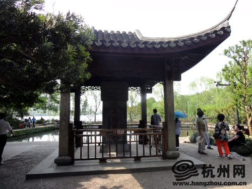 花港观鱼的石碑是乾隆皇帝下江南时所题,其中的"渔"字,繁体写法是四点,代表火,乾隆改为三点,代表水,寓意百姓生活风调雨顺,江山稳固太平。
