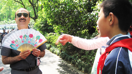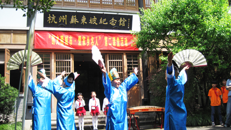 从去年的“童画杭州名人”活动开始,旨在开发杭州名人文化的第二课堂活动就受到广泛关注,被称为第二课堂的“杭州模式”。今天朝晖实验小学的同学们为表现苏东坡诗句而创作绘画的扇面,通过一面小小景致,打开游客了解杭州的一扇窗。不仅是第二课堂活动的延伸,更展示出杭州文明有好的城市气质。 |