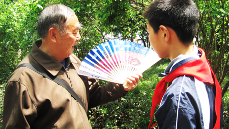 杭州网讯 “叔叔,欢迎您到杭州来!这是我们自己创作的苏东坡诗画扇面,希望您喜欢!”