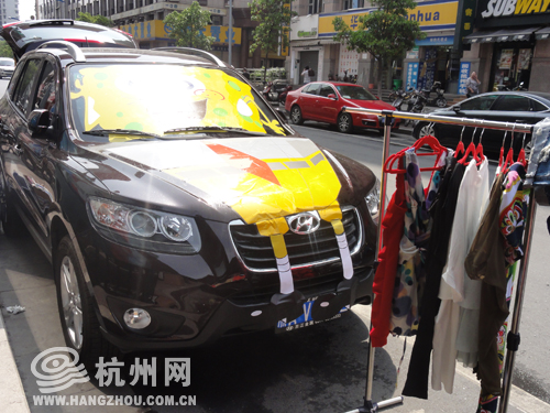 据后备箱集市的发起组织者杨先生介绍:“这次的后备箱集市已经是第二次了,去年的反响很好,于是今年对参与创意集市的车做了整体包装,夺人眼球,增加动漫的效果。”