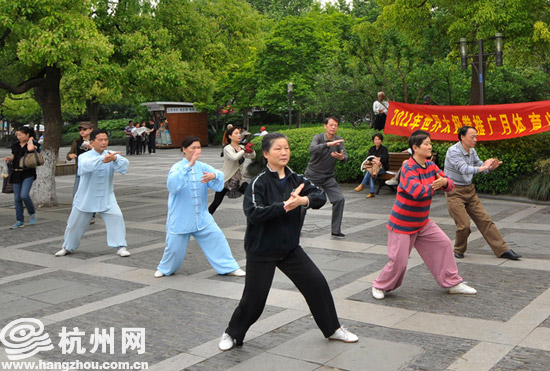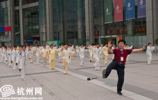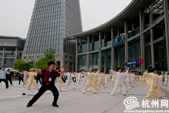 杭州市体育局赵荣福局长的带领近千名健身爱好者“习武”