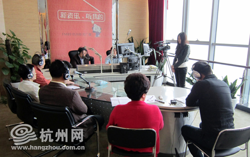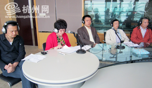 杭州市上城区副区长宦金元、区文明办副主任吴红星、区劳动局局长方本成、区卫生局副局长陈永权、区社建办主任马丽华、区残联残疾人劳动就业所主任孙忠于走进直播间,与市民、网友畅谈社会保障。