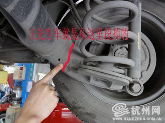 新车可以看出后桥架断裂处的位置