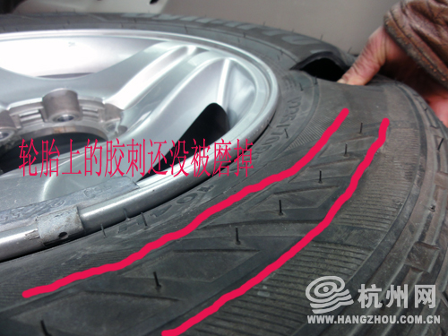 爆胎的轮胎只开了2800多公里轮胎的胶刺还没磨掉
