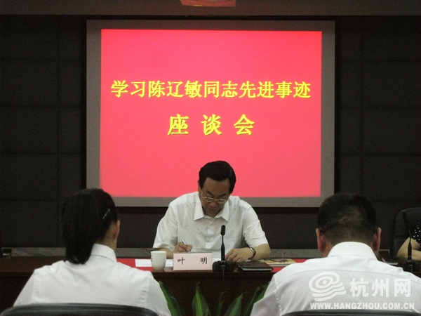 叶明指出,陈辽敏同志不仅是全市政法干警的楷模,也是全市广大党员干部学习的榜样。前日,市委也作出开展向“人民的好法官”陈辽敏同志学习的决定。全市各级党组织要把学习陈辽敏同志先进事迹与建立健全学习实践科学发展观长效机制结合起来,与实施“十二五”规划、推进富民强市结合起来,与推进三项重点工作有机结合起来,与践行社会主义核心价值体系、弘扬新时代杭州人文精神、建设社会主义精神文明有机结合起来,切实把思想和行动统一到中央和省市委的决策部署上来。