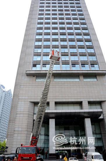 女主播体验登高消防车