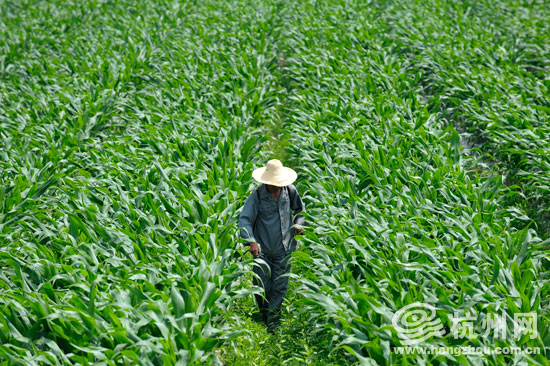 一片绿油油的玉米地,快要高过人头。(王宁 摄)