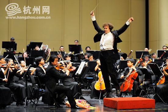 杭州网讯 5月20日晚,一场名为“五月花海·绚丽青春”的交响音乐会在杭州大剧院精彩上演。除了《红旗颂》、《满江红》这种经典的音乐华章之外,民乐演奏家用唢呐和口哨,传神地再现着河北民乐《打枣》,而来自德国的乐队指挥不仅将这首民乐演绎的淋漓尽致,更与民乐演奏家激情互动,将整场晚会推向高潮。