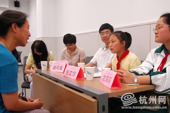 杭州网讯 5月29日下午,杭州热心妈妈小吴接到杭州团市委12355青少年服务台的通知后,匆忙赶到位于钱江新城杭州青少年发展中心参加“妈妈智囊团”志愿者面试。一到面试教室,她还以为自己走错地方了。因为在她面前的三个主考官,竟然是三个孩子。