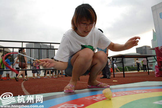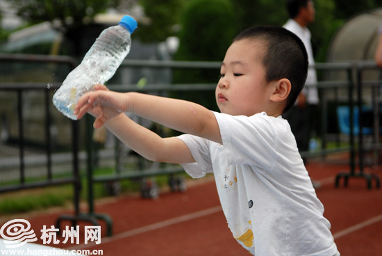 虽然说“梅超风”要突袭杭城,不过没有了烈日的杭州反而让更多人能在下班之后出来逛逛,一位年过六旬的周大伯拿着把蒲扇站在护栏外看着“嘉年华”中的孩子嬉戏,“我住这里附近,趁着凉快出来散散步,”周大伯是位老杭州,“很少能看到黄龙里有这样的公益性活动,这样的游戏应该多搞搞。”
