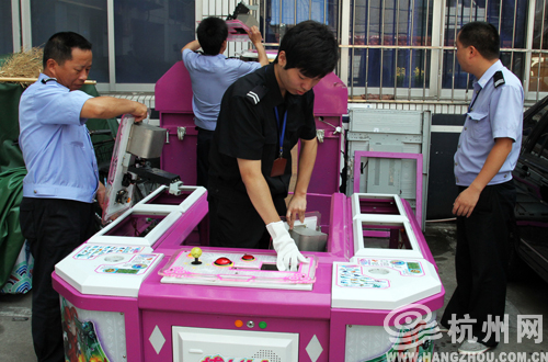 根据群众举报,定海警方迅速“突袭”一电子游戏厅,当场缴获这家游戏厅里一台带有赌博性质的电子游戏机。