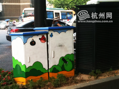 杭州网讯 一款名为《愤怒的小鸟》游戏,激起了全球网友的热情。近日细心的网友发现这只愤怒的小鸟出现在了杭州街头,环城西路、中山北路的变电箱和垃圾箱上都出现了这些卡通图案。