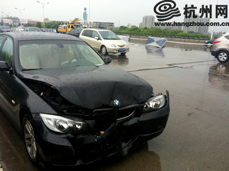 事故现场的宝马车(注:此图系杭州日报记者吴景伟摄,其他图片系本网记者拍摄)