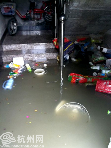 今天下午,家住余杭五常的潘先生给杭州网新闻热线85052222打来热线:一场暴雨过后,他们村庄一片汪洋,很多住在一楼的租户房间都进水了。