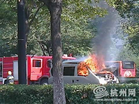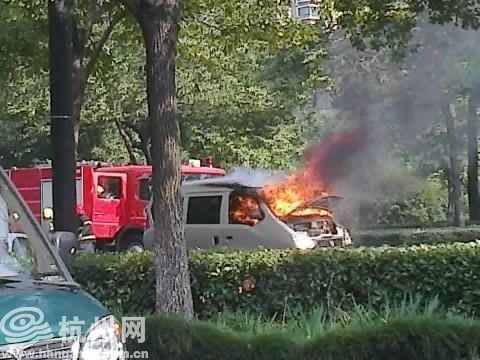 快讯 教工路天目山路一面包车自燃