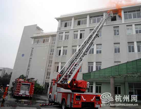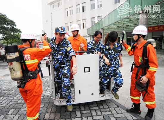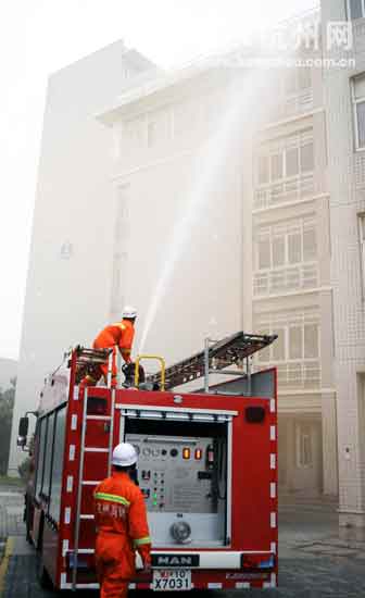 杭州网讯 开学前要军训,这个流程我们都很熟悉。现在,大学生们又多了一项新的锻炼内容——消防逃生演习。今天上午,浙江大学城市学院的1400余名大学生就体验了一把“水火无情”。