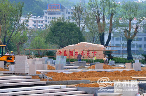 正在加紧施工的千岛湖秀水广场,开幕式就在这里举行