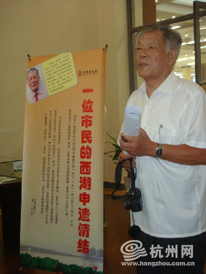 谭启晓在杭州图书馆举办“一个市民的西湖申遗情结”展览。