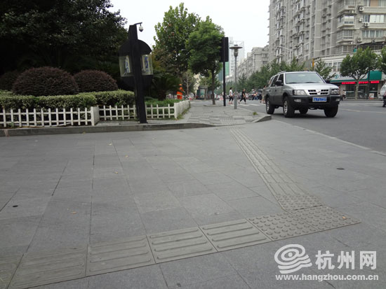 拱墅图书馆里设置了盲道,并且与马路上的盲道相接
