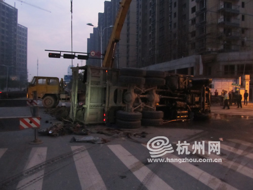 杭州网爆料热线0571-85052222接到市民朱先生反映:金渡北路附近,今天凌晨发生一起车祸,工程车压死两个人。