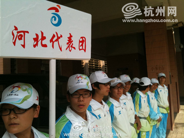 志愿者正等待迎接河北代表团