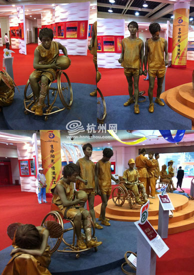 浙江工商大学的行为艺术表演,展现残疾人体育项目
