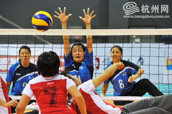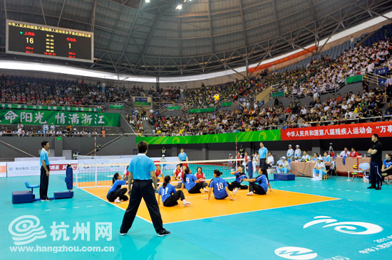 杭州网讯 10月12日,第八届全国残运会的各项比赛在几个赛区全面展开。在坐式排球项目中,浙江男女队双双取胜。郑雄鹰领军的浙江女排3比1击败了劲敌甘肃队,而男队则是3比0轻取山东队。