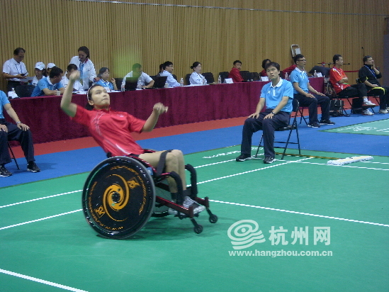 杭州网讯 10月16日,羽毛球比赛的第五天,轮椅羽毛球在城北体育公园首次开赛。一只手挥动球拍,一只手移动轮椅,他们用坚持和拼搏书写了属于他们的精彩乐章。